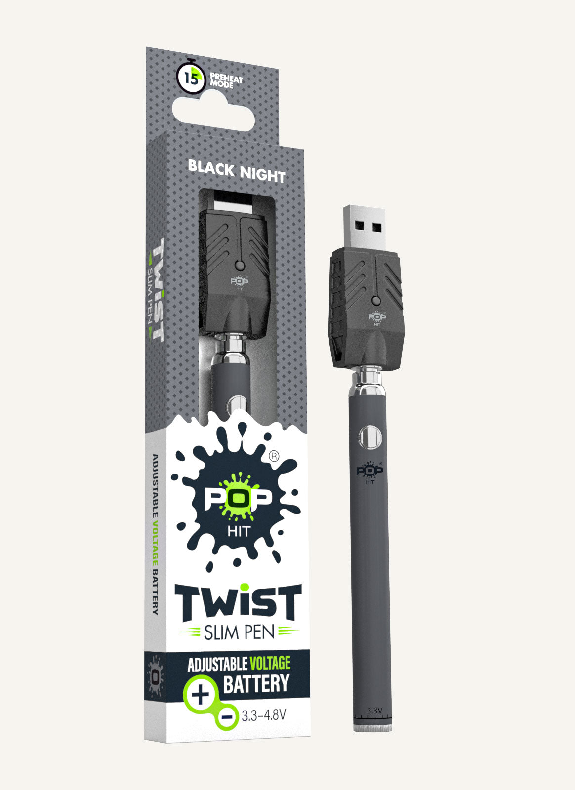 Pop Hit Twist Slim Pen 320mAh Adjustable Voltage Battery W/USB Smart Charger – 1ct